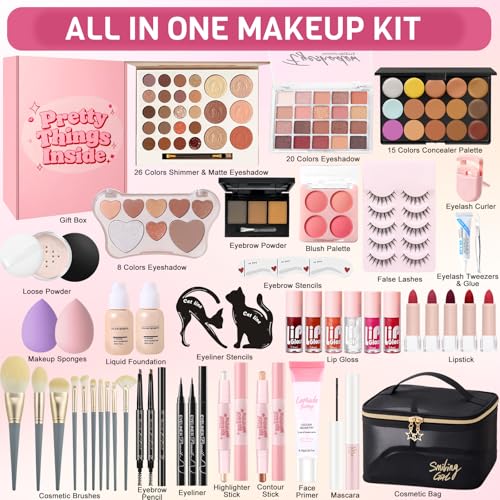 Coffret Maquillage Femme, Kit Maquillage Professionnel Complet, Kit de Cadeau Tout-en-un avec Ombres à Paupières Fond de Teint Correcteurs Eyeliner Mascara Gloss à Lèvres Rouge Lèvres Crayon Sourcil