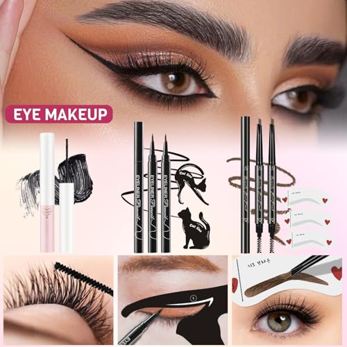 【Coffret Maquillage Tout-en-un】Ce kit de maquillage complet comprend tous les essentiels pour un look époustouflant : base de teint, fond de teint liquide, palette de correcteurs, poudre libre, palette de fards à paupières, eye-liner, mascara, crayon à sourcils, faux cils, palette de blush, stick illuminateur, stick contouring, rouge à lèvres, gloss, pinceaux de maquillage, éponges à maquillage, pochoirs à sourcils, pince à épiler et colle pour faux cils, pochoirs pour eye-liner, poudre à sourcils, recourbe-cils, trousse de maquillage et coffret cadeau. Ce coffret maquillage femme couvre chaque étape: teint, yeux, sourcils et lèvres, pour un look impeccable et une couvrance totale.