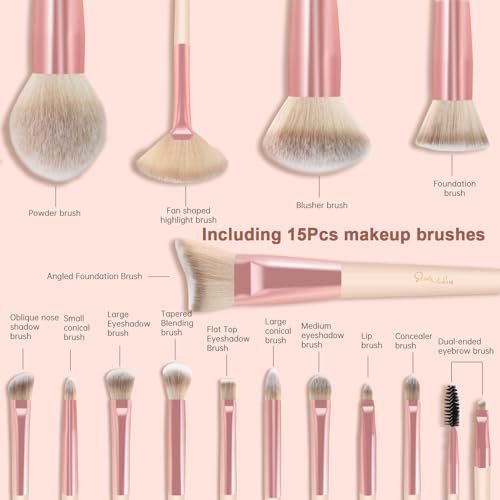 【Kit de Maquillage Complet et Polyvalent】Notre set de 36 pièces comprend 15 pinceaux maquillage essentiels, 4 grandes éponges, 4 mini éponges, 2 grandes houppettes en forme de cœur, 4 mini houppettes cœur, 4 mini houppettes pouce, 1 houppette démaquillante, 1 tapis de nettoyage et 1 trousse. Ce kit pinceaux maquillage complet répond à tous vos besoins beauté.