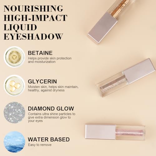 💋FARD À PAUPIÈRES PAILLETɠ: le fard à paupières liquide est de couleur très brillante et offre des couleurs métalliques époustouflantes et un effet prismatique époustouflant en un seul passage ; Le fard à paupières liquide est 100 % doux pour la peau, vous pouvez donc vous maquiller en toute tranquillité.