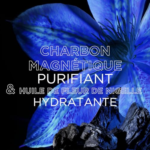 Formule enrichie en charbon actif purifiant et en extrait d’huile de fleur de Nigelle aux vertus hydratantes, Sans résidu ni effet gras, Formule composée à 94% d’ingrédients d’origine naturelle