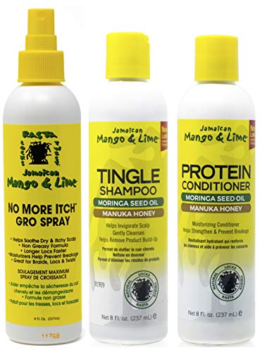 Jamacican Mango & Lime No More Itch Grow Spray 8oz avec Tingle Shampoo 8oz & Protein Conditioner 8oz