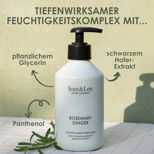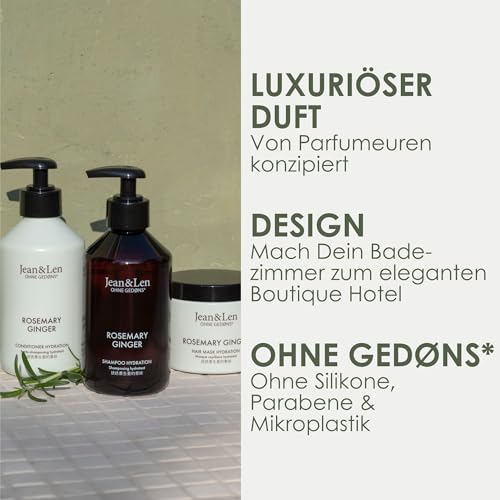 Le shampooing hydratant Jean et Len Rosemary &amp ; Ginger nettoie les cheveux en profondeur pendant que l’après-shampooing et le traitement capillaire correspondants les soignent – Fabriqué en Allemagne avec amour