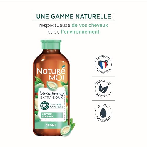 Naturé Moi – Shampooing Extra Doux – Soin des Cheveux poue le Normaux – Sans Sulfate – Amande Douce Bio – Douceur et Brillance – 95% d’Origine Naturelle – 250 ml – Fabriqué en France