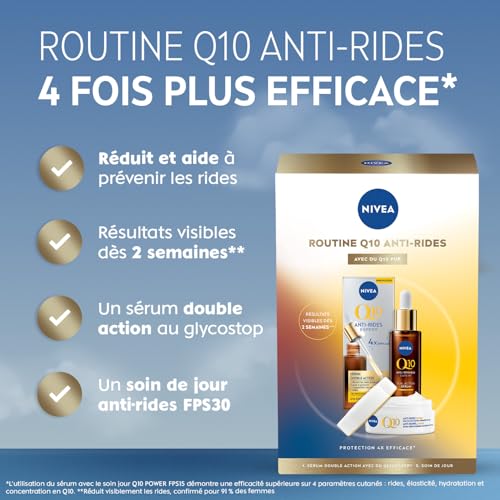 NIVEA – Coffret Soin Visage Anti-Âge Q10 Anti-Rides – Sérum Double Action Anti-Rides (30 ml) + Soin de Jour Anti-Rides & Fermeté (50 ml) – Q10 Pur, Créatine & Glycostop – Tous Types de Peaux