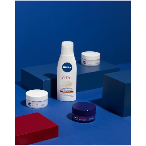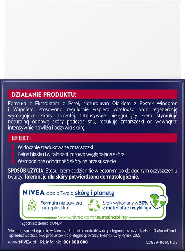 NIVEA VITAL Soin de nuit anti-rides intensif pour peaux matures, soin du visage avec calcium, extraits de perles et huile de pépins de raisin naturelle, crème de nuit pour soutenir la régénération de