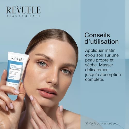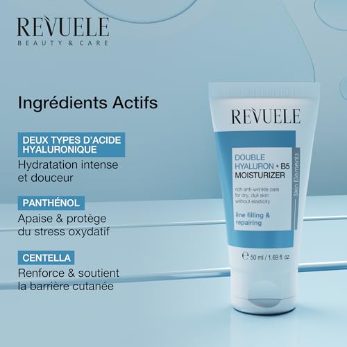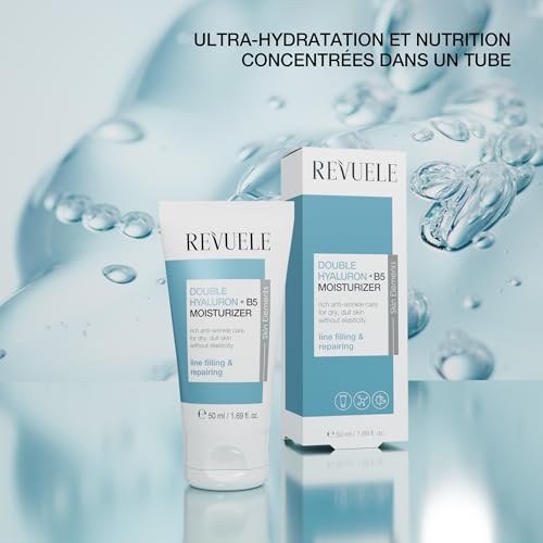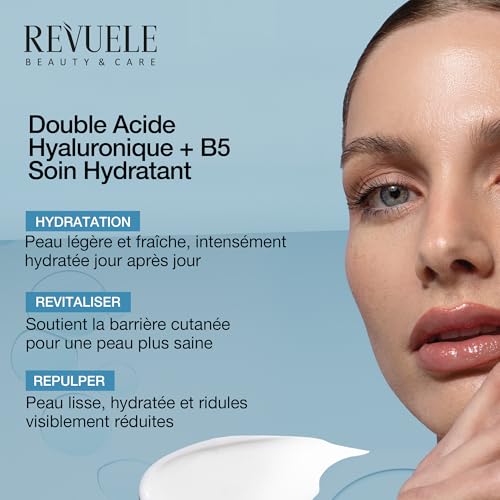 REVUELE Crème Visage Double Hyaluron + B5 – Crème Hydratant et Régénérante à l’Acide Hyaluronique, Lisse Ridules, Renforce Barrière Cutanée, Peau Douce et Lumineuse, 50 ml