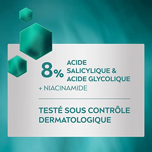 • Contient du niacinamide, de l’acide salicylique et de l’acide glycolique