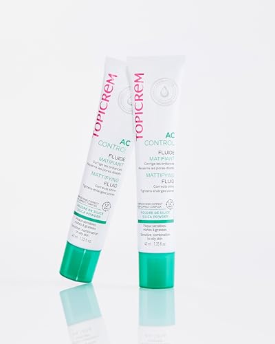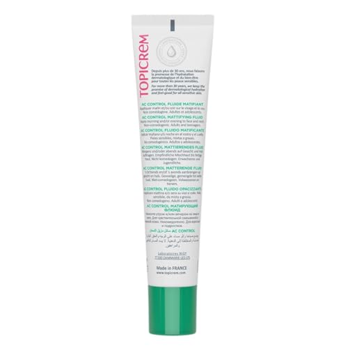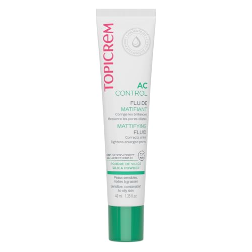 Topicrem – AC CONTROL Fluide Matifiant – Soin Visage Anti Sébum, Anti Brillance – Matifie le Teint 12h, Resserre les Pores – Peaux Sensibles, Mixtes à Grasses – 40 ml