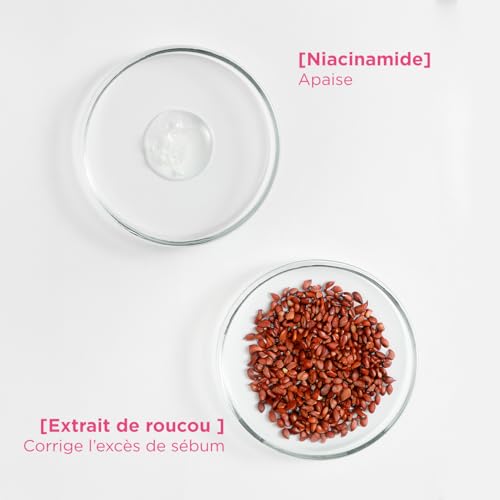 PRINCIPAUX INGRÉDIENTS : Ce soin visage est formulé à partir de notre complexe SEBO-CORRECT, qui combine niacinamide et extrait de Roucou pour corriger l’excès de sébum et apaiser la peau. Il contient également de la Silice qui aide à limiter les brillances et fournit un effet peau lisse au fini velouté.