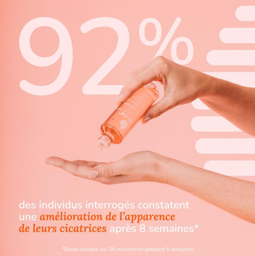 ATTÉNUE L’APPARENCE DES VERGETURES ET CICATRICES : L’Huile de Soin Bi-Oil améliore l’aspect de vos vergetures et cicatrices, nouvelles et anciennes – Contribue à atténuer et lisser les rides
