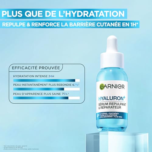 Spécification: Garnier SkinActive – Sérum Gel Repulpant Hyaluronic Aloe – Soin Enrichi en Acide Hyaluronique et Aloe Vera – Pour Tous Types de Peaux – 30 ml