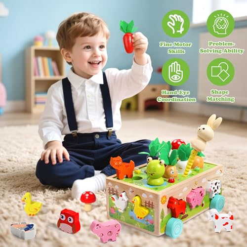 👧 Temps de jeu partagé et interaction sociale: Invitez au jeu partagé ! Que ce soit pour récolter des carottes, attraper des vers ou associer des formes, ce jouet montessori 1 an passionne autant les filles que les garçons. Il favorise l’interaction entre les enfants et renforce le lien parent-enfant grâce à des expériences de jeu sans écran partagées à la ferme