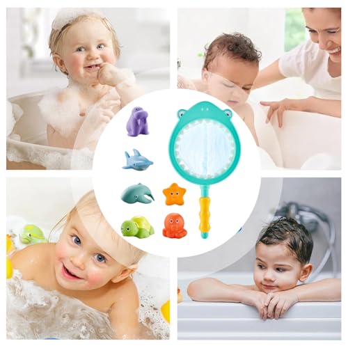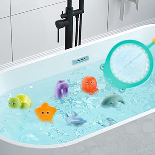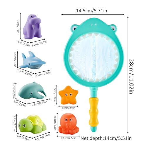 Baby Bath Toys, Pool Animals, 11.02×0.98×5.71 inches Water Play Set with 6 Colorful Cartoon Figures, Interactive Educational Catching Games for Bathtub, Swim Time, Outdoor Use