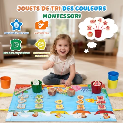 Jouet Enfant 2 3 Ans, Jeux Montessori Pêche a la Ligne pour Enfant 2 3 Ans en Français – Jeu Educatif 2-3 Ans de Tri pour Enfant, Cadeau d’anniversaire ou Cadeau Noel Enfant 2 3 4 5 6 Ans