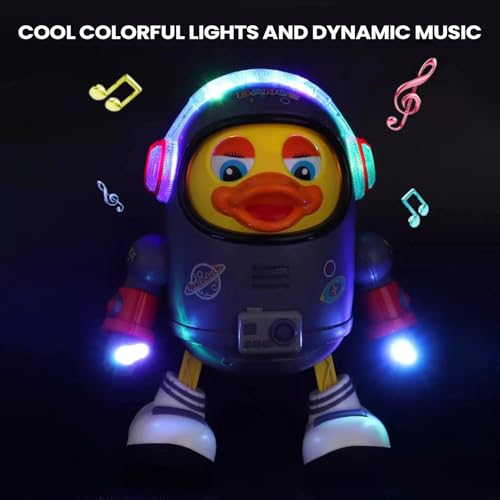 Caractéristiques de sécurité : caractéristiques lisses rounded edges, the dancing space duck toy enables children to safely hold and follow its captivatin g actions during play, enhancing both fun and security in their daily routines