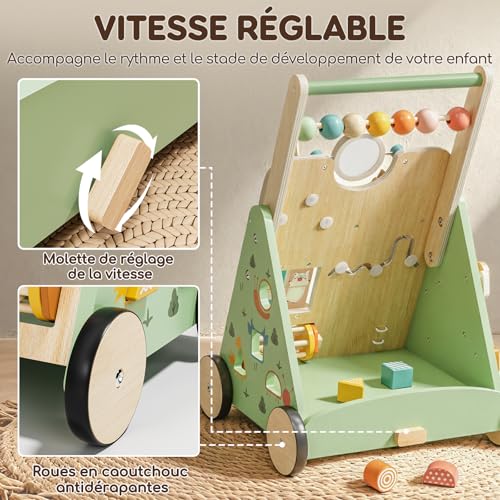 Trotteur bébé réglable avec contrôle de vitesse: Offrez à votre enfant la confiance nécessaire pour explorer à son propre rythme. Ce trotteur bébé en bois est doté d’un régulateur de vitesse intégré qui contrôle en douceur l’avancée, limite les chutes et aide bébé à maîtriser la marche en toute sérénité. Une véritable aide à la marche bébé, conforme aux recommandations des spécialistes de la petite enfance pour un apprentissage progressif.