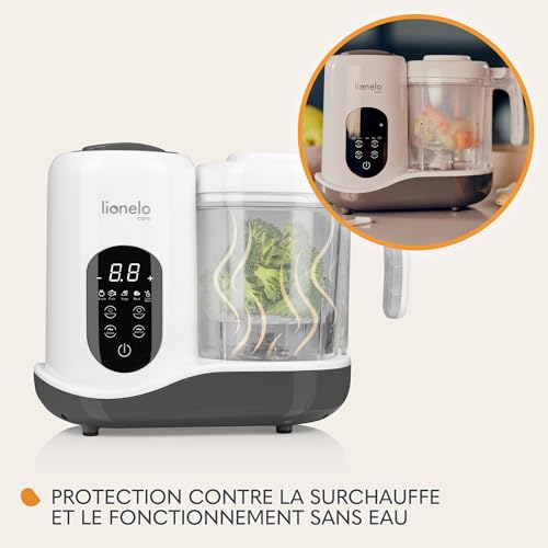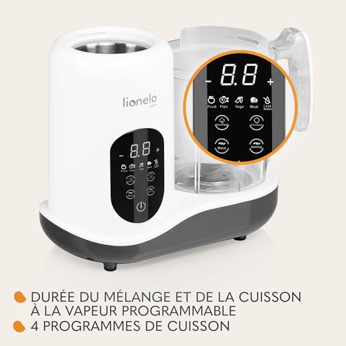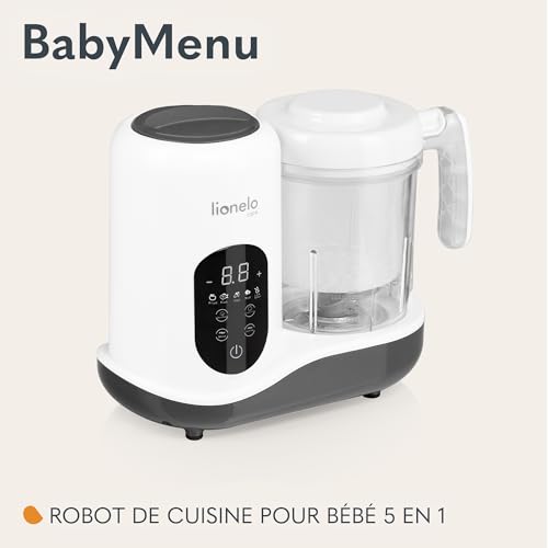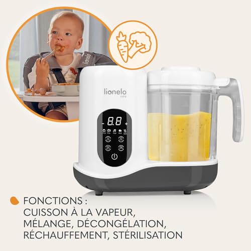 LIONELO BABYMENU Robot bébé cuiseur mixeur pour bébé multifonctionnel 300; 4 programmes; cuisson à la vapeur, mixage, réchauffage, décongélation, recettes en ligne, Blanc et Noir