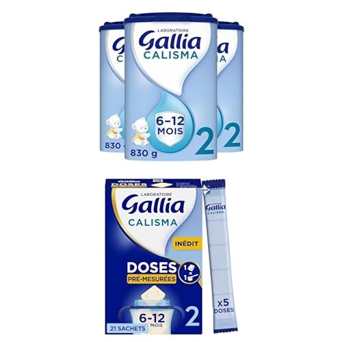 Lot Gallia Calisma 2ème Âge (6–12 mois) – 3x830g + 21 Sachets Pré-Mesurés (504g) – Lait Infantile en Poudre – Vitamines A, C, D – Sans Huile de Palme – Format Classique + Pratique en Doses