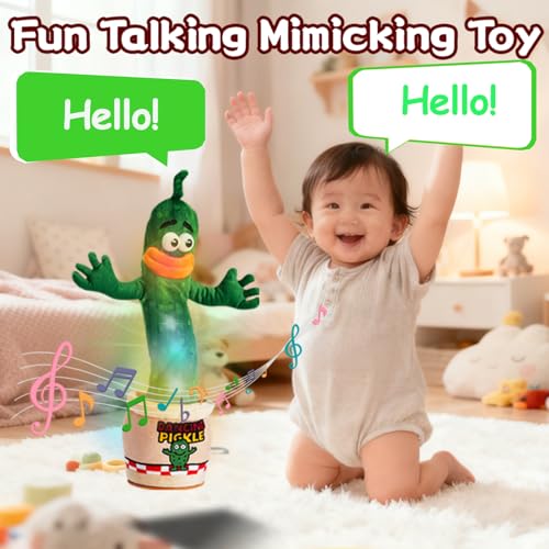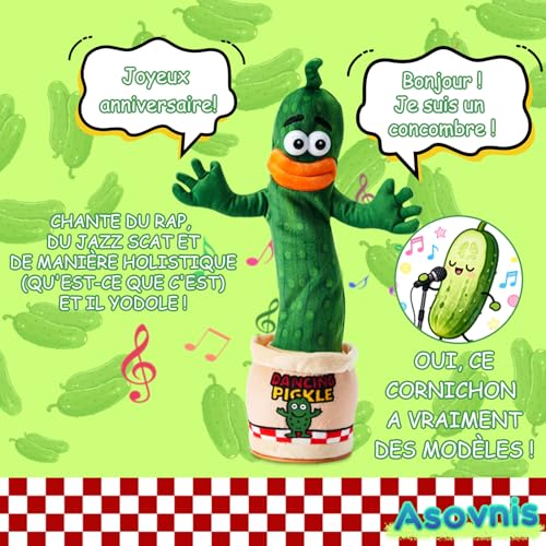 ASOVNIS Jouet de cornichon Parlant Dansant pour bébé Tout-Petit, Cadeaux pour garçons et Filles Chantant, Enregistrement répétant ce Que Vous Dites, 120 chansons, Cadeau Amusant pour Enfants