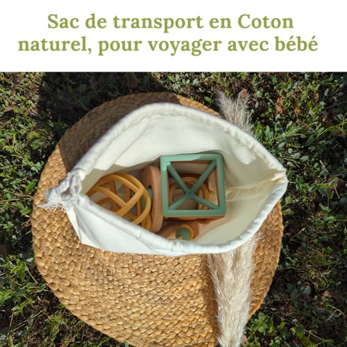 👜 FACILE A TRANSPORTER : Un joli sac blanc vient accompagner ce lot de jouets d’éveil pour pouvoir les transporter partout où vous allez . En poussette, en voiture, en vacances. Plus de limite !