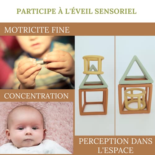 👶JOUETS DURABLES DANS LE TEMPS : Composée exclusivement d’un mélange harmonieux de bois et de silicone, cet ensemble de jeux d’éveil sera très durable dans le temps pour plusieurs générations.