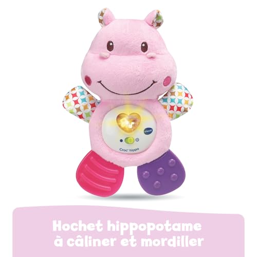 VTech – Croc’ Hippo Rose, Peluche Bébé Interactive et Apaisante, Éveil Musical, Jouet de Dentition, Cadeau de Naissance – Contenu en Français