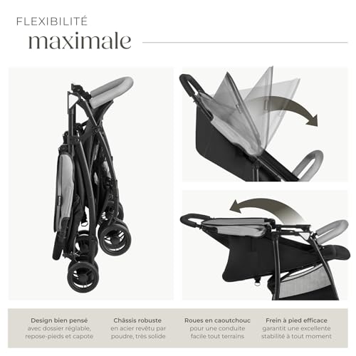 CONFORT ADAPTÉ AUX BÉBÉS ET ENFANTS : Le dossier et le repose-pieds de cette poussette sont réglables en continu pour s’adapter à la position la plus confortable de votre bébé, que ce soit pour une sieste ou une promenade active. Elle est idéale pour les bébés de 0 à 36 mois, et vous permet d’ajuster le confort à mesure que votre enfant grandit. Un design pensé pour un bien-être maximal et une expérience agréable à chaque sortie.