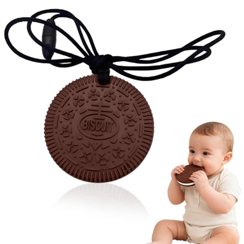 KIRZAX Collier à Mâcher Enfant TDAH Dentition, Jouet Biscuit à Saisir, Collier Sensoriel Anti-Stress Silicone, ≥3 Mois