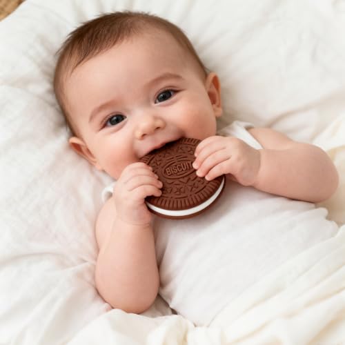 Design réaliste : reproduit fidèlement la forme d’un biscuit Oreo pour capter l’attention de votre bébé, satisfaisant ainsi sa phase d’exploration orale tout en développant ses capacités de préhension.