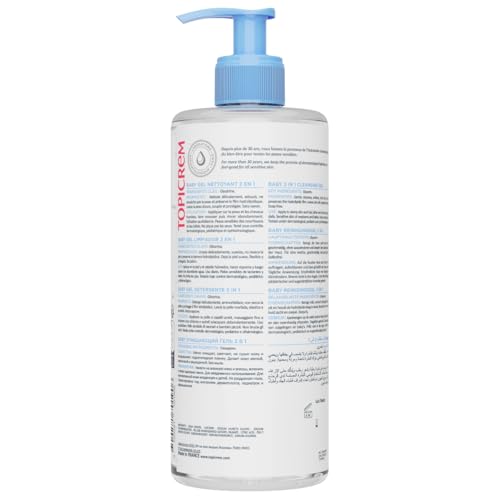 Topicrem – Baby Gel Nettoyant 2 en 1 – Nettoie délicatement, adoucit et protège, Visage, corps et cheveux, Peaux sensibles, Fabrication Française – 500 ml