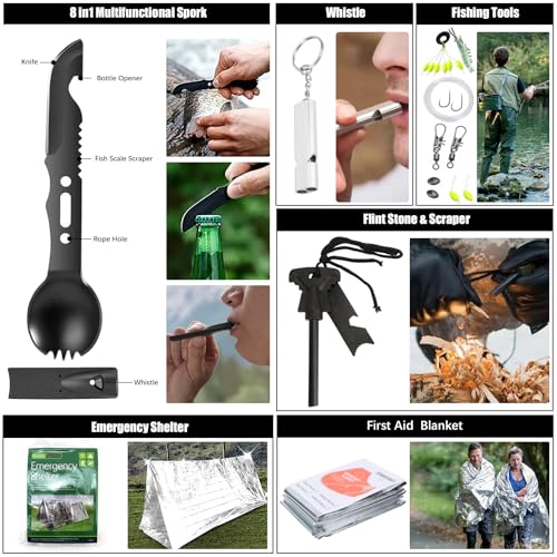 💯【Large application】 Ce kit de survie d’urgence en plein air, pratique et polyvalent, est un outil précieux pour une utilisation en extérieur et à la maison. Largement utilisé pour la chasse, la randonnée, la pêche, le vélo, l’exploration, l’alpinisme et autres aventures en plein air, c’est également un outil essentiel pour les randonneurs, les campeurs, les amateurs de plein air, etc.