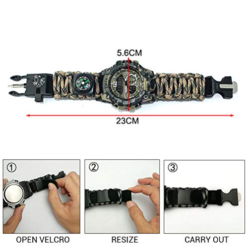 Camping Outdoor Survival Watch Multi-Fonction Bracelet Compass Whistle Paracord Bracelet Equipment Tools Kit (Rouge et Noir)