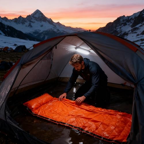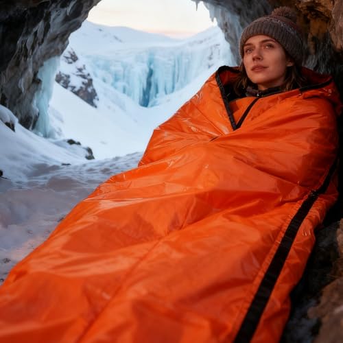 Dependable Exterior Protecting: The sleep bag for outdoors features Camping emergencyy sleeping bag Survival gear sleeping bag -density PE lamination, providing abrasion- and tear-resistant performance that protects against rugged terrain, making it suitable for camping and hiking adventures where durability matters most