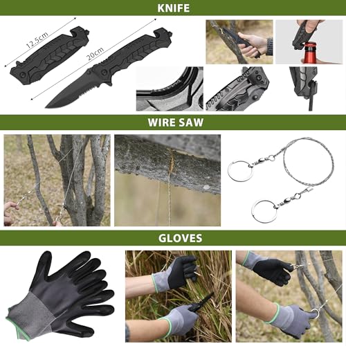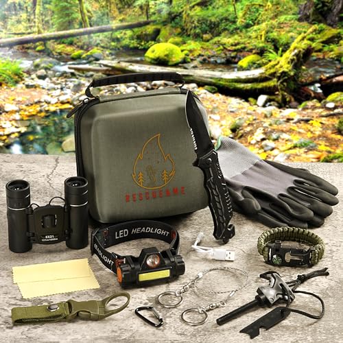 Kit Bivouac-Kit de Survie/Couteau de Survie/Sac de Survie/Urbex équipement/Urbex kit/Camping Accessoires/Randonnée Accessoires/Jumelle/Lampe Frontale Rechargeable.