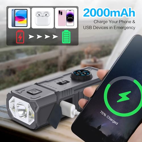 Magnétique Radio Dynamo Survie, 2000mAh Power Bank FM/AM/SW Mini Radio Portable Rechargeable Rotation à 180° Lampe Torche LED Alarme SOS Kit de Survie pour Randonnée, Materiel Camping