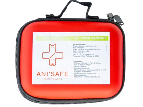Trousse de secours pour animaux de compagnie, idéale durant vos randonnées, voyages ou promenades. Assemblée en France