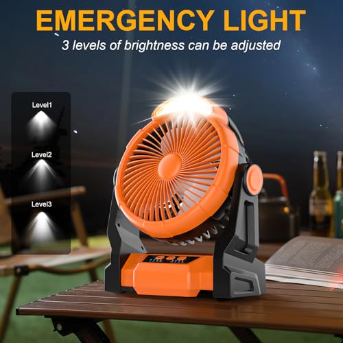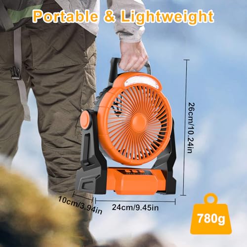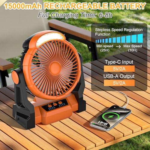 Diealles Shine Ventilateur de Camping, Ventilateur Rechargeable 15000mAh, Ventilateur USB Silencieux avec Lumière LED, Ventilateurs de Table pour Tente Voyage Extérieur