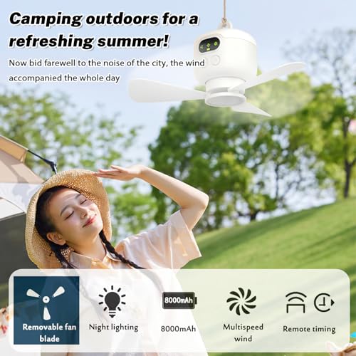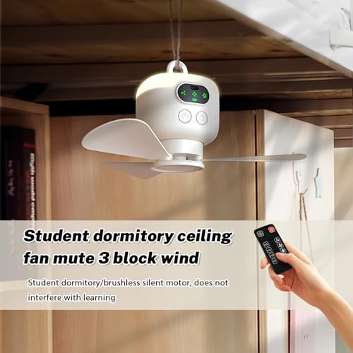 Mini ventilateur de plafond rechargeable USB de 26,9 cm 4 W, 3 vitesses, mini ventilateur de plafond USB, ventilateur de plafond avec veilleuses et télécommande, pour tente, randonnée, camping