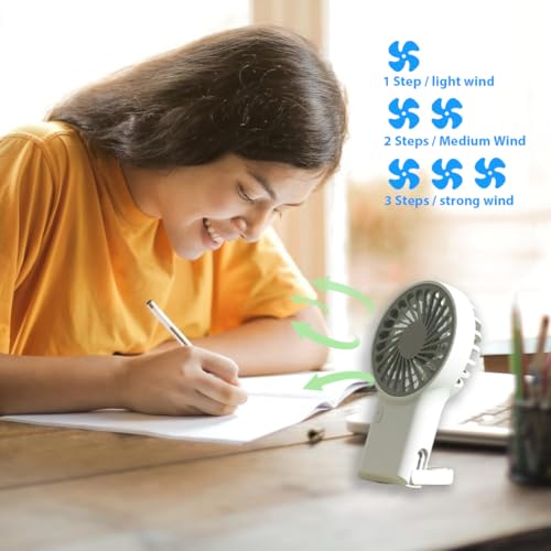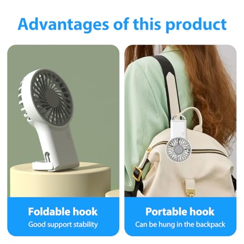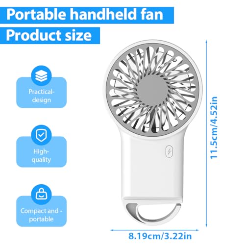 Mini Ventilateur Portatif,Ventilateur à Main 3 en 1,Ventilateur de Poche Rechargeable de Type-C,Petit Ventilateur de Poche à Piles avec 3 Vitesses,avec Crochet,pour le Voyage,Camping,Bureau