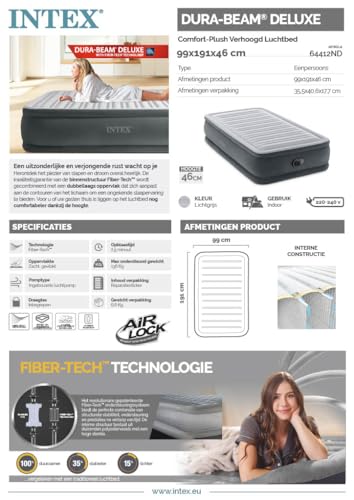 Intex – 64412ND – Lit D’Appoint Comfort Plush Elevated – Électrique 1 Pers