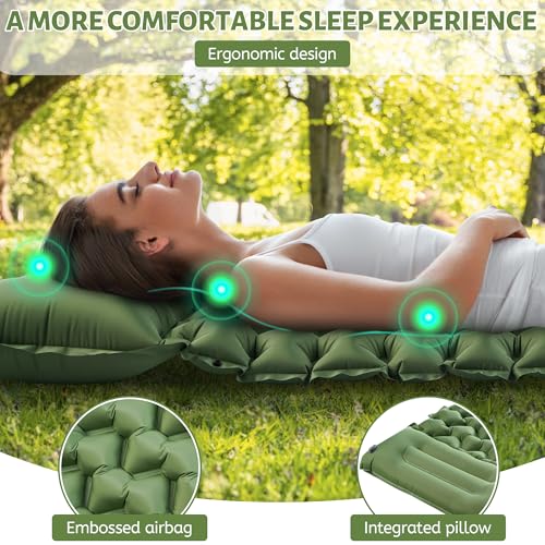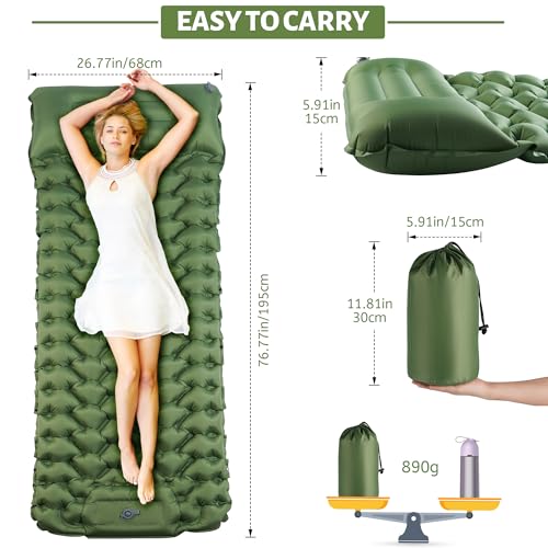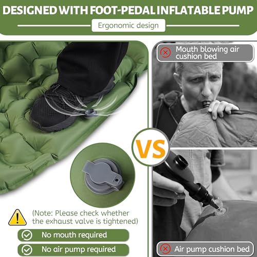 Matelas Camping 1 Place, Tapis Élargi et Épaissi, Pneumatique avec Pompe à Air à Pédale, Matelas Ultra-Léger et Portable