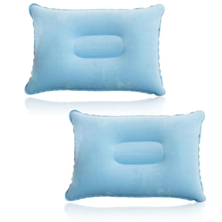 2 Piece Camping Inflatable Pillow, Inflatable Travel Pillow Car Travel Pillow, Comfort Neck Pillow, Inflatable Beach Pillow Flocked, For Office Outdoor Hiking