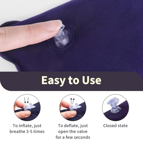 Gonflage Facile et Rapide : Se gonfle rapidement à la bouche sans pompe. Vous pouvez ajuster la fermeté selon vos préférences. Oreiller gonflable de voyage se dégonfle en quelques secondes pour un rangement instantané.