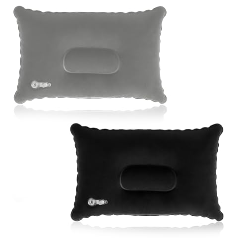 2X Oreillers gonflables, Coussins Gonflable de Camping Ultralégers Oreillers pour Les Voyages Les Excursions Coussin de Plage, Ultralégers Flocage Coussins Gonflable Voyage – 34x22cm