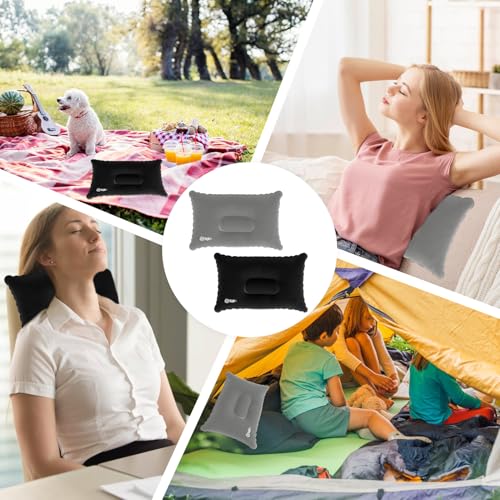 🦢【Portable et pratique】La taille est de 34×22 cm. Noir + Gris. Il s’agit d’un mini oreiller. Parfait pour les voyages et les loisirs tels que la randonnée, les voyages de vacances, les vacances à la plage, le camping, les voyages scolaires ou les voyages d’affaires. L’oreiller gonflable a la taille de la paume de votre main lorsqu’il est plié. Il est suffisamment petit et léger pour être transporté dans un sac à dos.