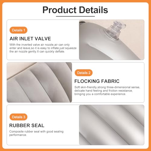 Matériaux Haut de Gamme: La surface de cet oreiller gonflable est recouverte d’un tissu floqué en PVC de haute qualité, offrant un toucher doux et agréable pour la peau, ainsi que des propriétés antidérapantes, imperméables et résistantes aux perforations. Les taches quotidiennes peuvent être facilement nettoyées à l’aide d’un chiffon humide, tandis que sa conception résistante à l’abrasion garantit sa durabilité malgré une utilisation répétée.