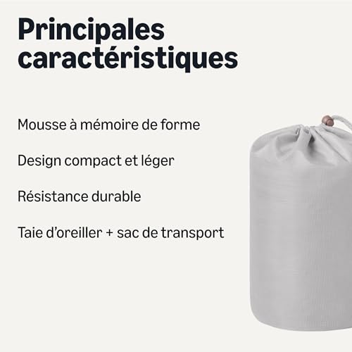 Amazon Basics Oreiller de Camping, 42 x 24 x 12 cm, Gris