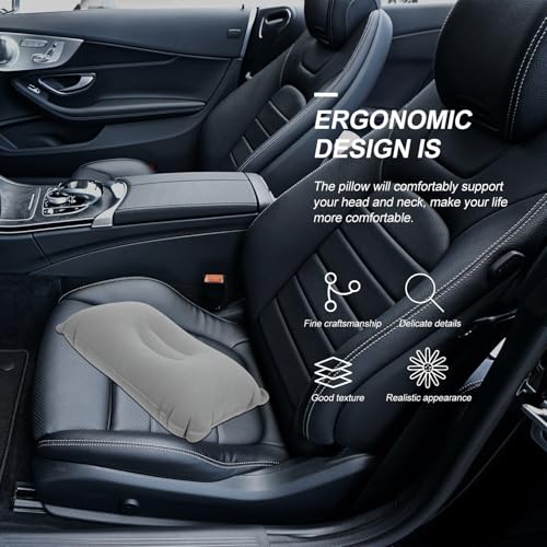 GARVALON Oreiller Gonflable Portable pour Camping et Bureau Coussin Épais PVC Floqué Confortable pour Sieste et Voyage Grand Format Gris