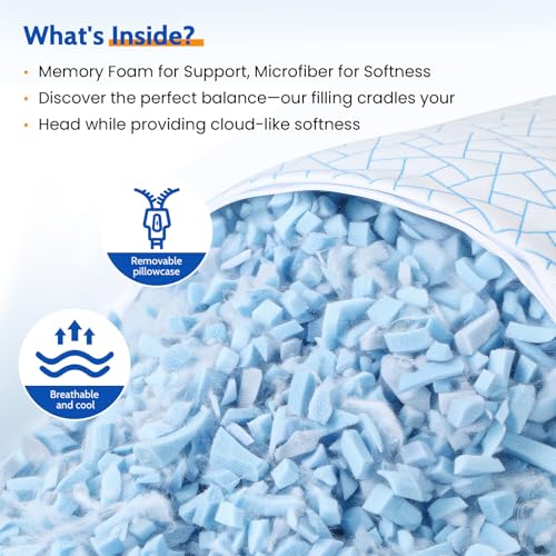 🌙【Protection hypoallergénique】Comprend une taie d’oreiller hypoallergénique amovible pour prévenir efficacement la prolifération des acariens et des bactéries. La housse lavable en machine conserve une fraîcheur durable, favorisant un environnement de sommeil sain.